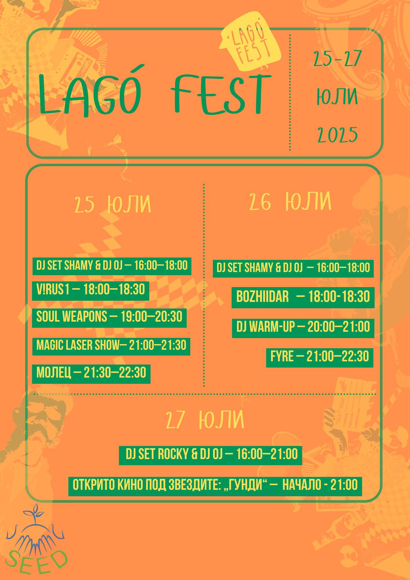 Мултидисциплинарният фестивал отново ще се проведе на добре познатата локация – Туристическата градина в парк “Лаго”,Самоков! Тази година “Лаго Фест” ще продължи цели три дни! Началото ще бъде дадено в петък, 25 юли от 16:00 ч., а финалът – в неделя, 27 юли в 22:30 ч.
